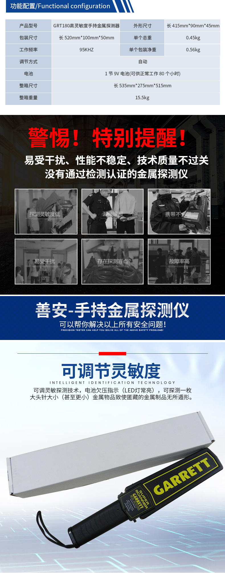 | 8 | 會根據金屬大小產生不同報警聲調,在嘈雜的環境可外接耳機 |