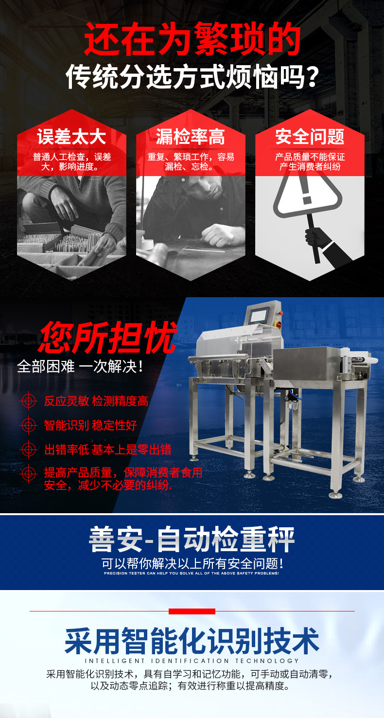 廣泛應用于電子、制藥、食品、飲料、保健品、日化、輕工、農副產品等多行業。尤其適用于制藥保健品行業檢測片劑藥品是否少粒、多粒;粉末袋裝藥品是否缺袋、多袋;液體狀藥品重量是否達到標準要求;藥品附件缺失檢測(如說明書、干燥劑等)。