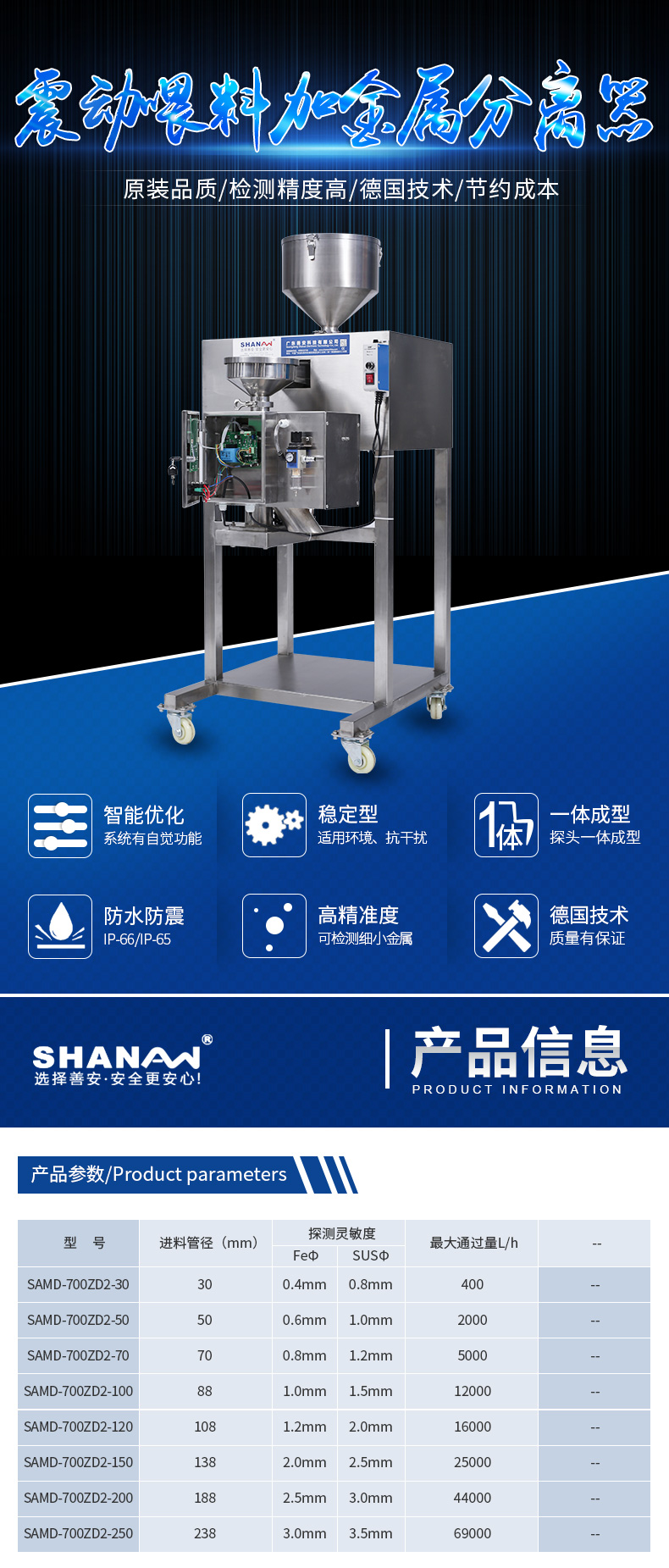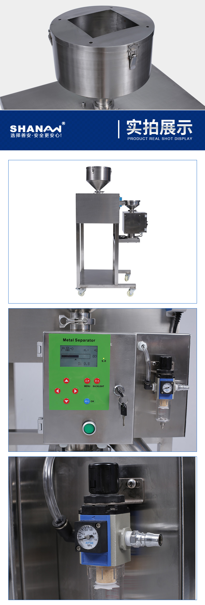 金屬分離器作用于檢測和分離混在食品、藥品、塑料、化工原料、食品原料等行業中的所有金屬,包括鐵類及非鐵類金屬(如銅、鋁、不銹鋼)等。及時分離金屬雜質,減少停機維修事故,增加工作效率,從而減低成本