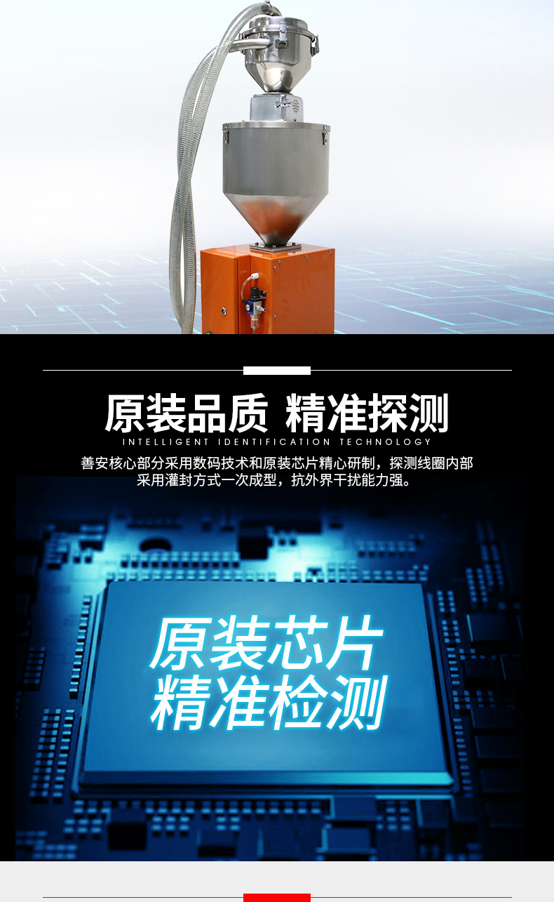 Replace manual detection 具備產品效應自動手動學習功能;集成金屬異物快速剔除系統, 適合檢測散料產品,即使金屬被密封在產品中也能檢測出來。