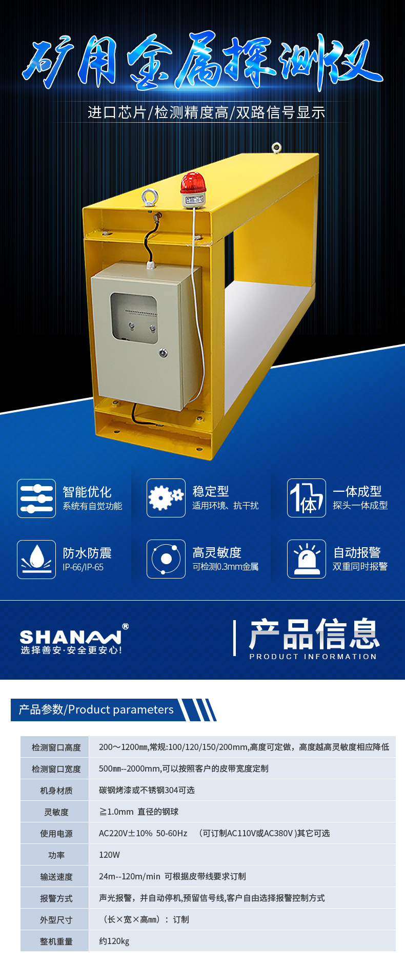 | 7 | 可廣泛應用于礦山、電廠、等輸送帶有金屬接頭可排除接頭效應,檢測金屬。 |