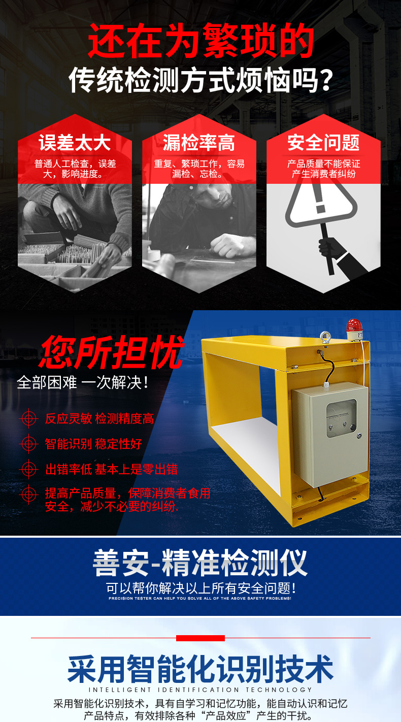 SA-600S型分體式金屬探測儀,廣泛適用于檢測礦山水泥、采礦碎石、煤礦、火力發電廠、塑料粉碎加收、木材加工、橡膠生產、造紙建材等行業,用于檢測失落于原料或產品中的各種不必要的金屬雜物(如鐵、銅、鋁、不銹鋼等)。在以上行業中進行安全檢測,及時發現不安全因素,拒絕不必要金屬雜質對產品的污染,減少不必要金屬雜物對下游精密設備的損壞,避免企業遭受經濟損失。