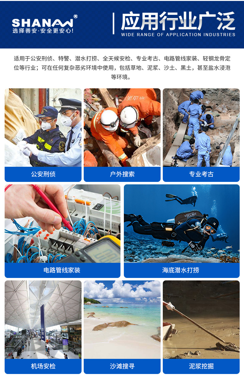 | 9 | 穿透力強:能探測到金屬材料、瓷器、皮毛、紙張、衣服包裹內的電子產 |