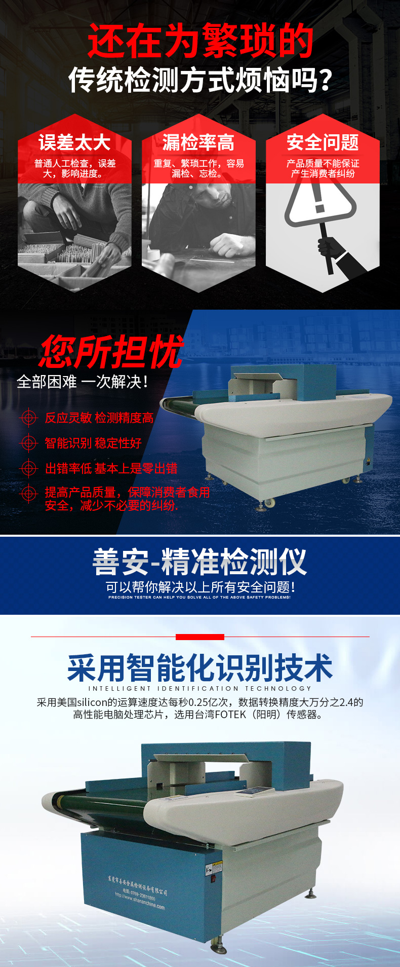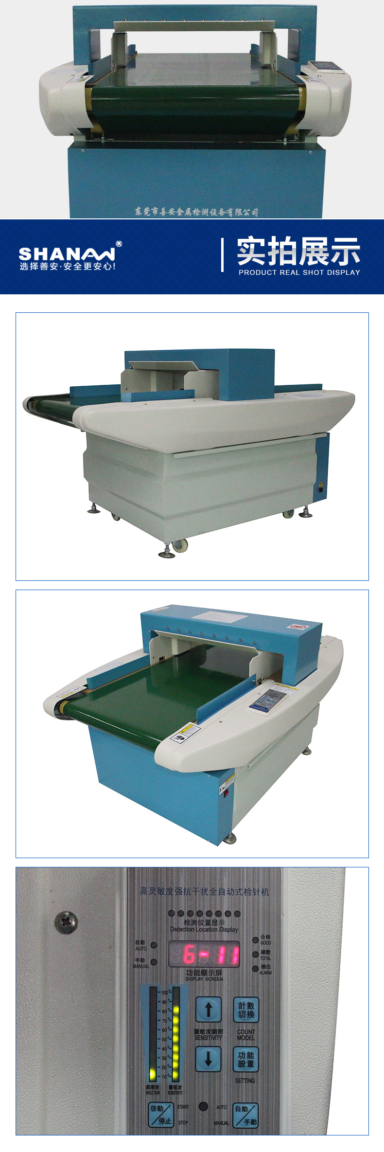 玩具、服裝、制鞋、化工、皮革、針織等需要檢測鐵磁性金屬雜質檢出的行業,用于檢測夾雜或失落于原料或產品中的斷針、鐵絲等鐵磁性有色金屬,對于極嚴格要求金屬檢測的產品特別適合,并能準確識別出斷針(金屬雜質)所在的位置。提高產品安全系數,減少危害。