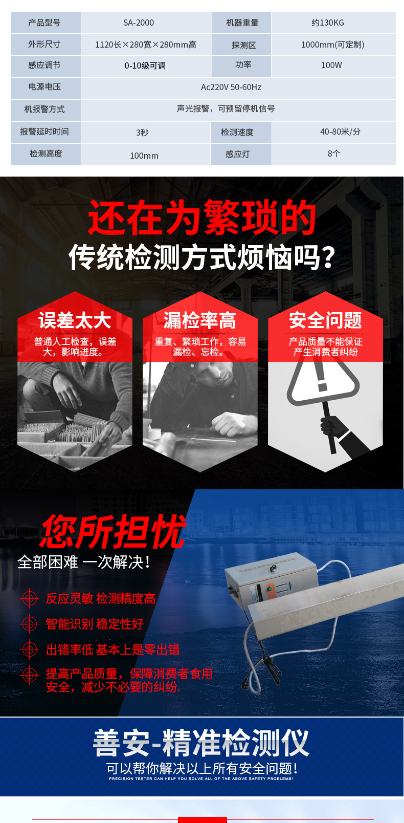 | 8 | 流水線型外表,碳鋼結構,一流烘漆工藝,確保機器的檢測穩定,性能良好,使用壽命更長 |