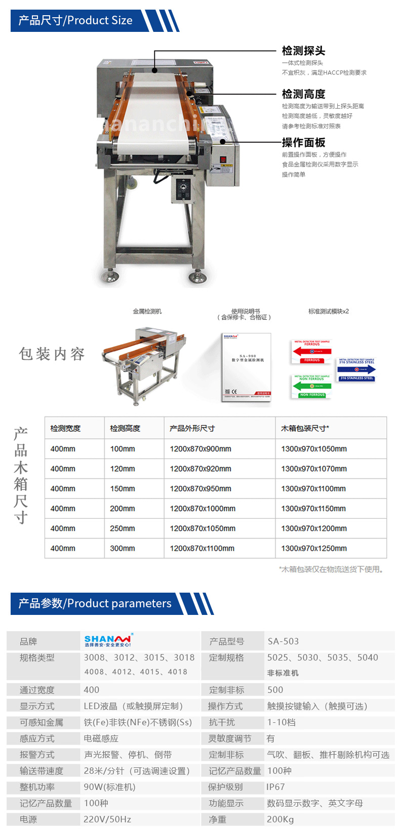 | 3 | 該金屬檢測機設計科學,簡便的可拆卸式機架,方便用戶清洗。 |